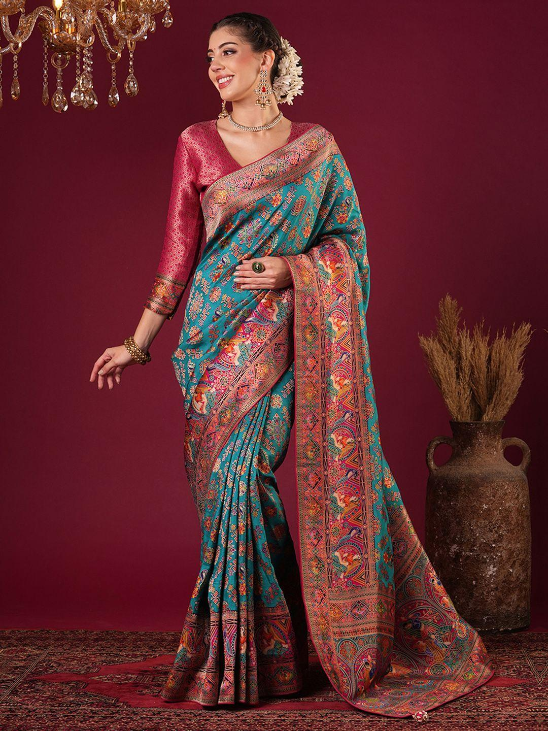 The blouse worn by the model might be for modelling purpose only. Check the image of the blouse piece to understand how the actual blouse piece looks like.
