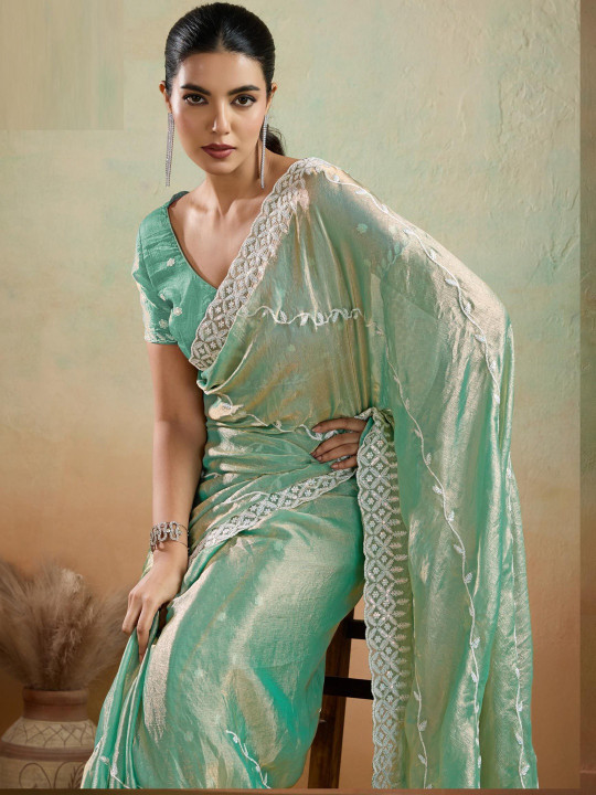 The blouse worn by the model might be for modelling purpose only. Check the image of the blouse piece to understand how the actual blouse piece looks like.